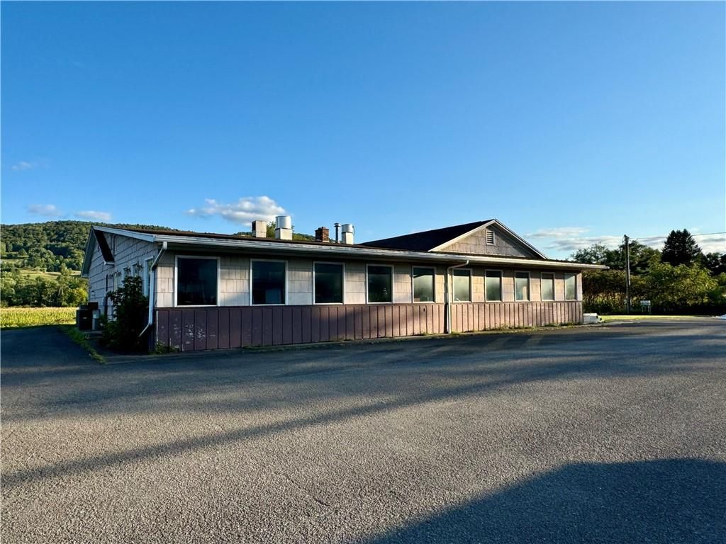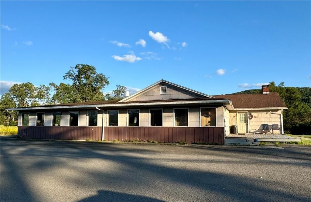 Opportunity knocks! Will you answer? Take full advantage of the restaurant opportunity or use your creativity for a totally different business use. 3.6 Acres in Central New York, off Interstate 88 and on NY-7 offers you great curb-side visibility with plenty of parking, easy access, village water, restaurant equipment...and three rental units featuring instant income! Unbeatable opportunity to walk in, stock the shelves, decorate to your taste- and open the doors for business! Restaurant above grade square footage is 5,179 sq ft, and has below grade square footage including walk-in coolers, prep and work areas of 2,954 sq feet for a total restaurant square footage of 8,133 square feet. The three residential apartments are 635 square feet, 740 square feet, and 1,276 square feet. Total building above grade square footage is 7,830 sqft, 2,954 below grade sf, and 10,784 total above and below grade sf. Property includes two lots with total 3.6 acres. Age of building is estimated to be from 1975.